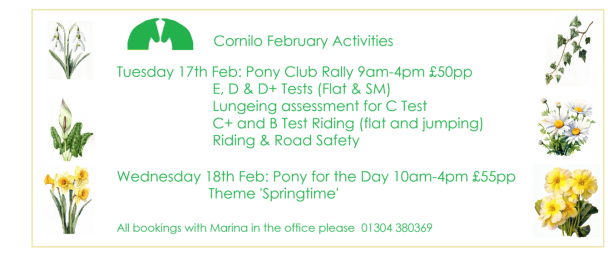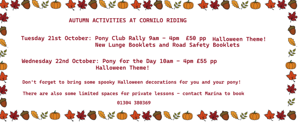 Welcome to our Cornilo Riding website. You will find all the latest activities, prices and special offers on this home page. We hope our website gives you an idea of what we can provide, but we'd much prefer to meet you and show you around in person. Call the office on 01304 380369 and arrange a visit.
